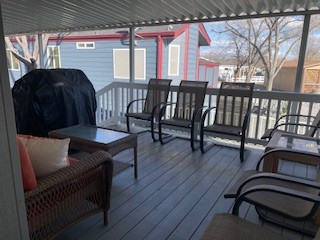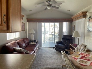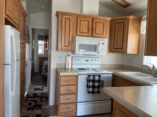 Dazzling getaway is now available! This home is move in ready with vaulted ceilings. Kitchen has white appliances and plenty of storage space. Ceiling fans in living room, bedroom. Bath has walk in shower. Large side deck for shade that provides privacy & is cool in the summer heat. AC/Heat Pump. Spacious carport. Storage shed. This home invites you in for a visit!